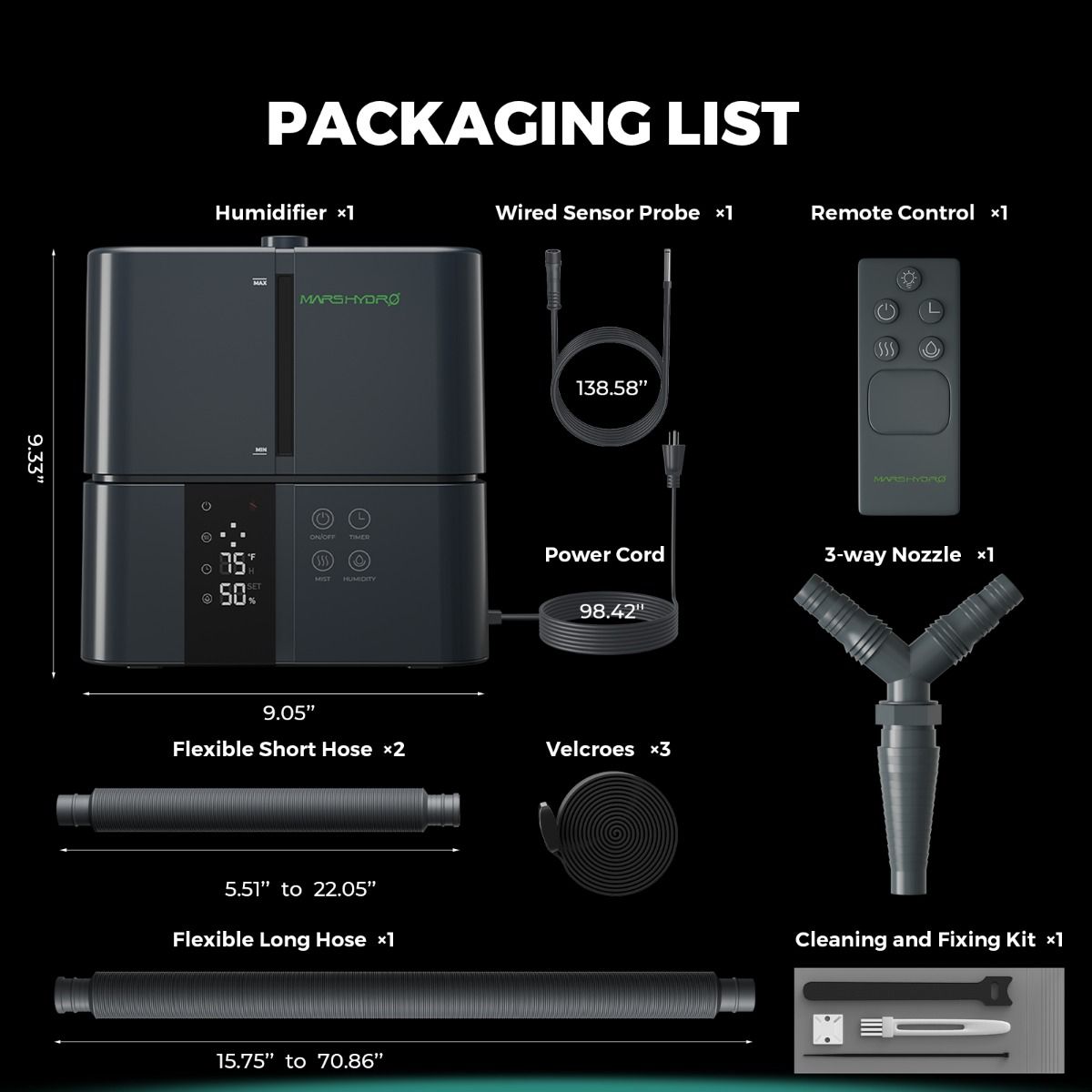 Direct humidity to specific areas in the grow space using the telescopic hose for focused water distribution. Manage settings easily with a 1-12H timer and activate sleep mode to create an undisturbed environment.