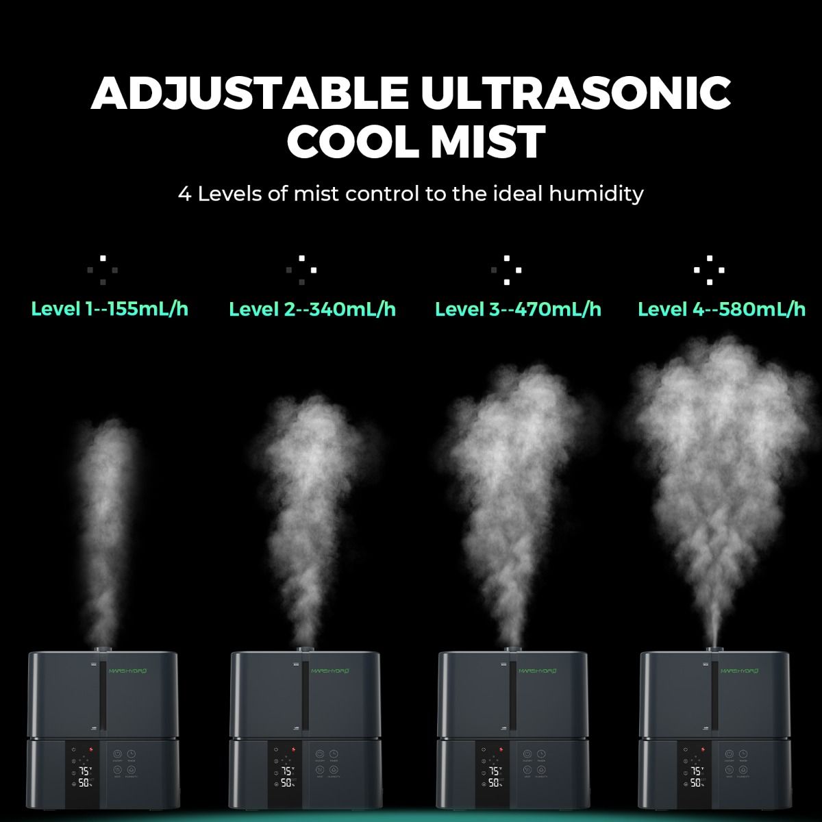 Tailor the humidity to your plants' needs with four adjustable mist levels. Maintain the perfect environment for your growing space, enhancing plant health and growth.