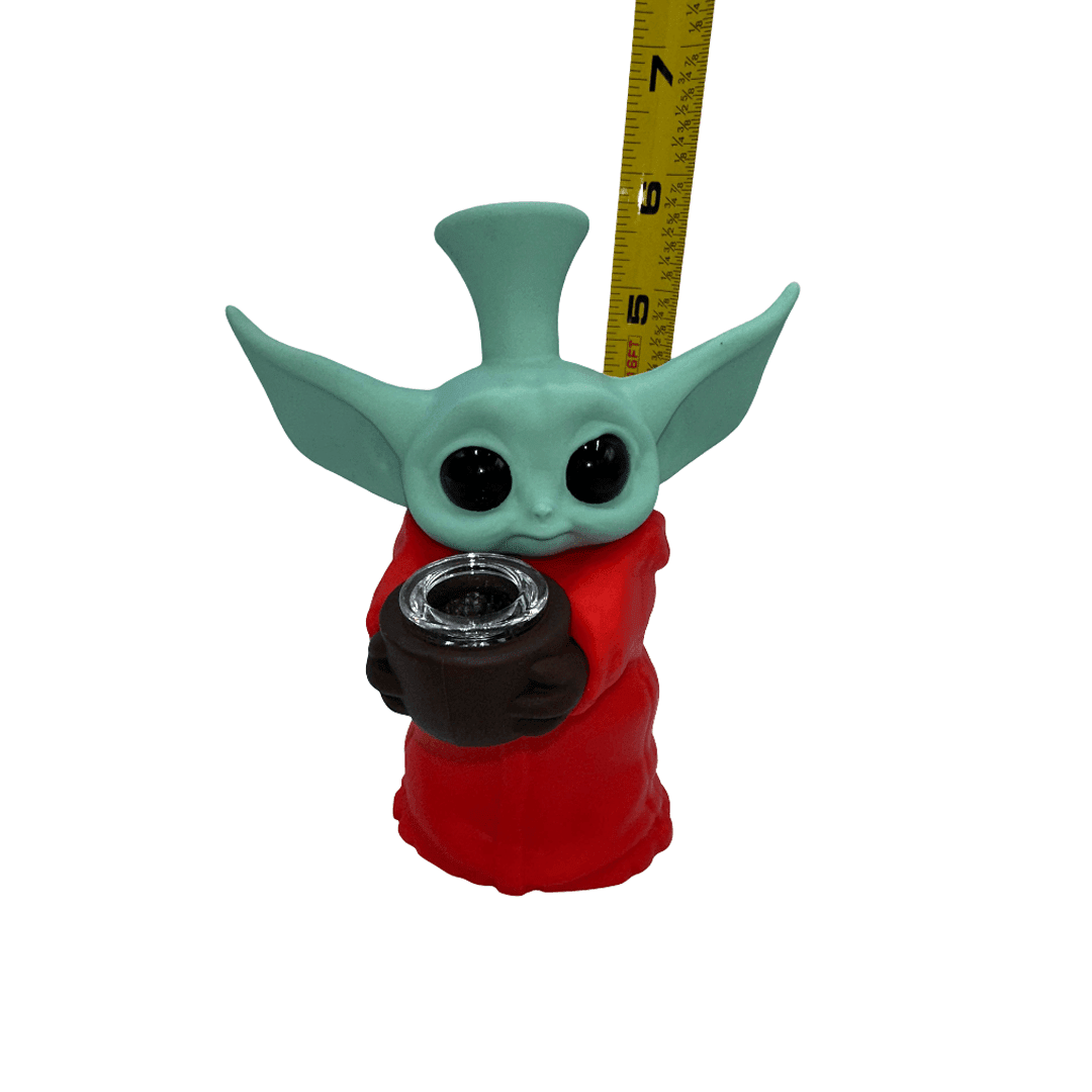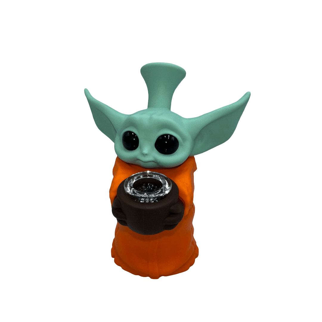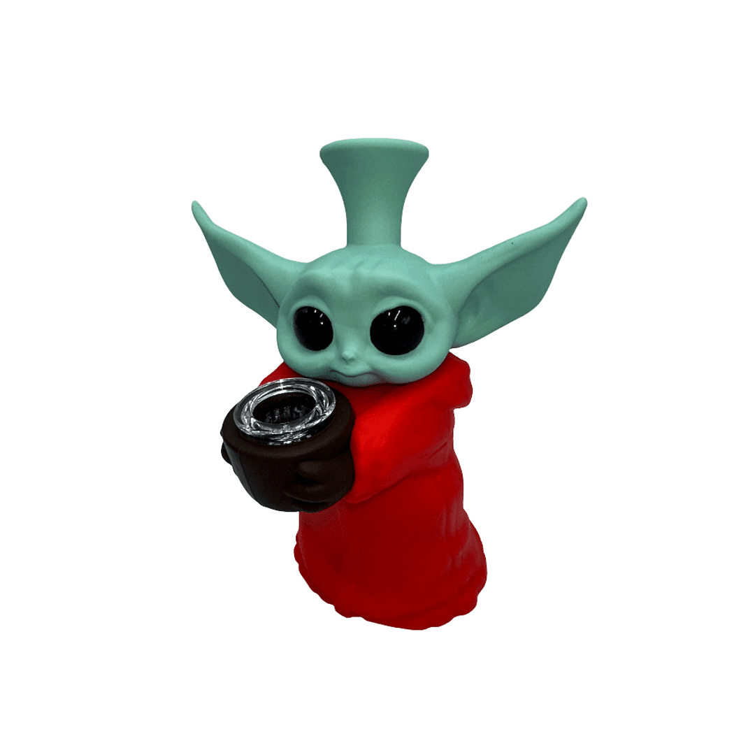 This adorable 5.5-inch Baby Yoda silicone water pipe combines pop culture charm with practical functionality. Made from durable, flexible food-grade silicone, it offers unbreakable construction perfect for travel while remaining easy to clean and maintain. Available in red or orange with included quartz bowl.